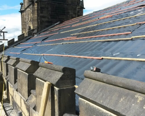 As with all great buildings the overiding priority is to keep the water out. St Pauls in Shipley had seen its fair share of bad weather and as a result the roof required a lot of attention. With the help of Heritage Lottery funding Lloyd and Smith coordinated re roofing to South side of the building , whilst beefing up the drainage capacity from the high level gutters to the new drains in the ground.